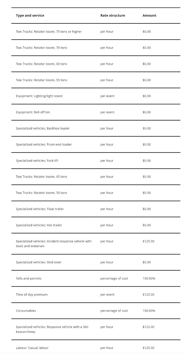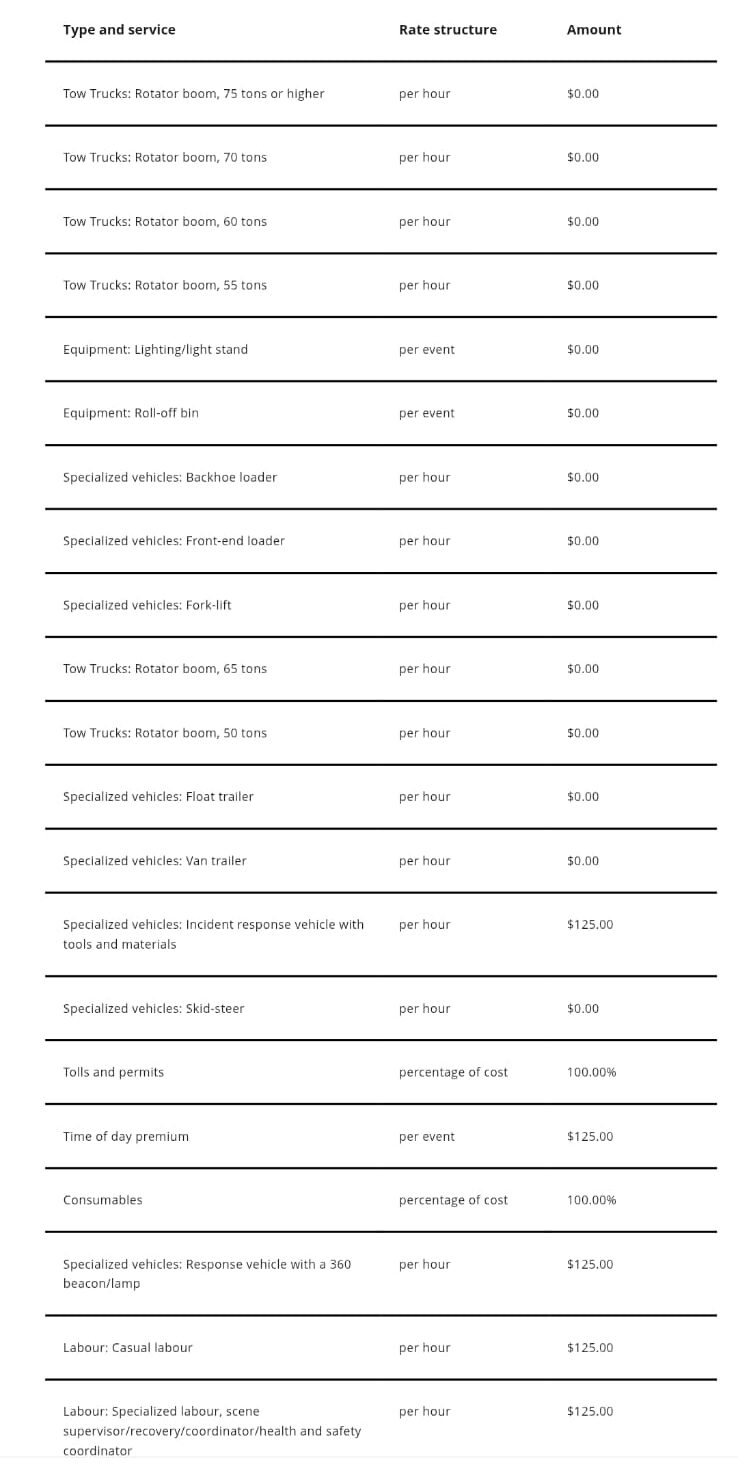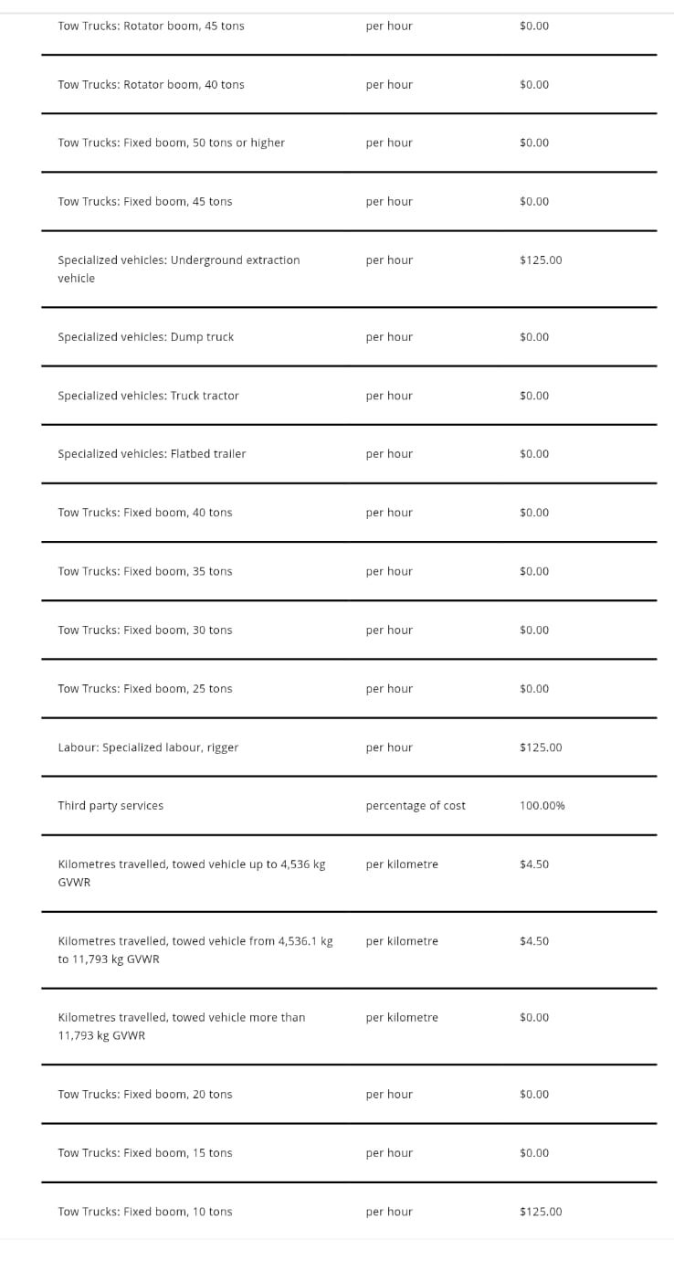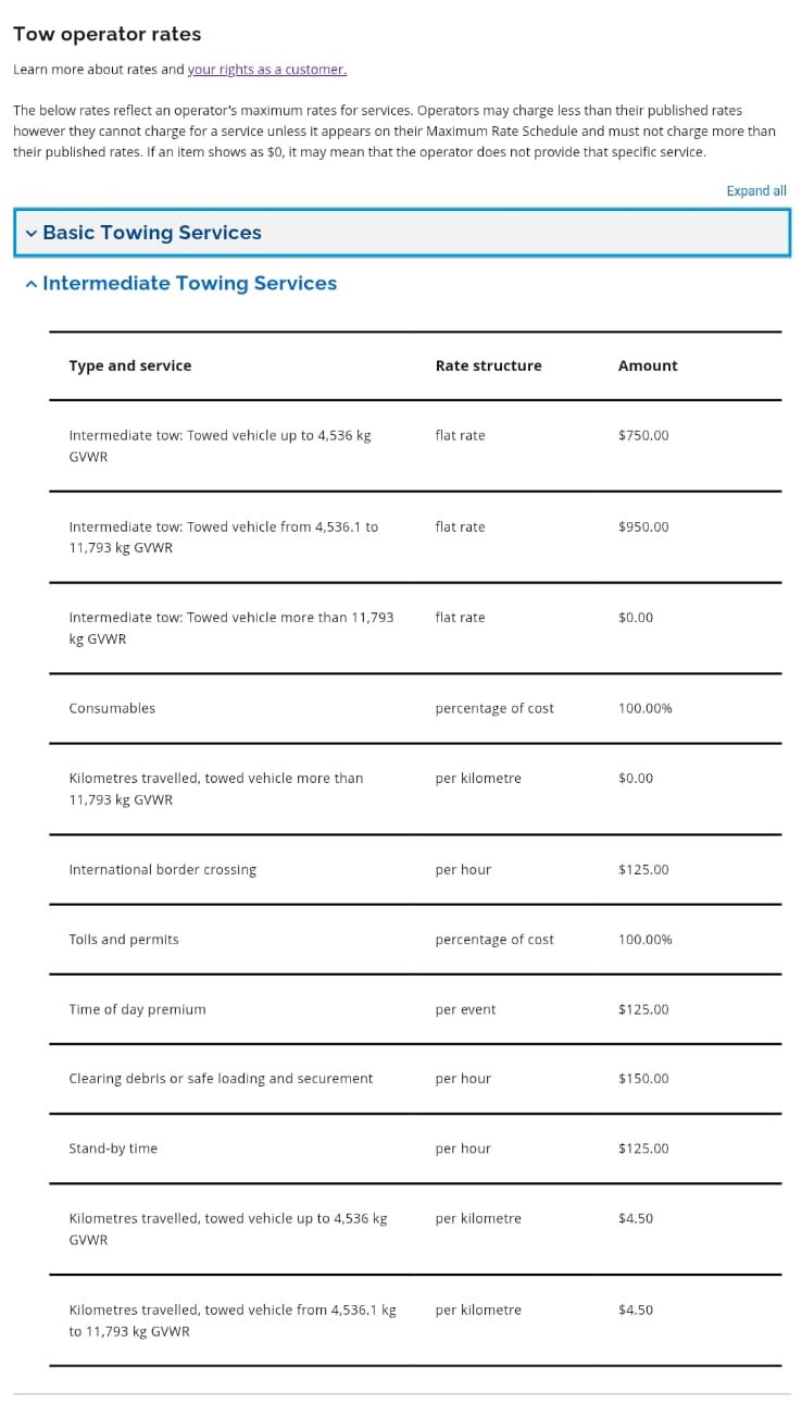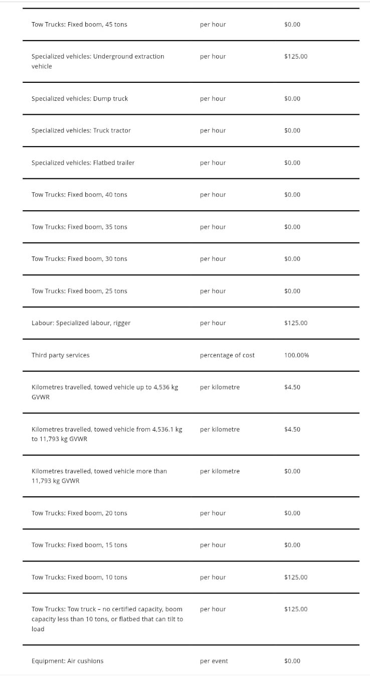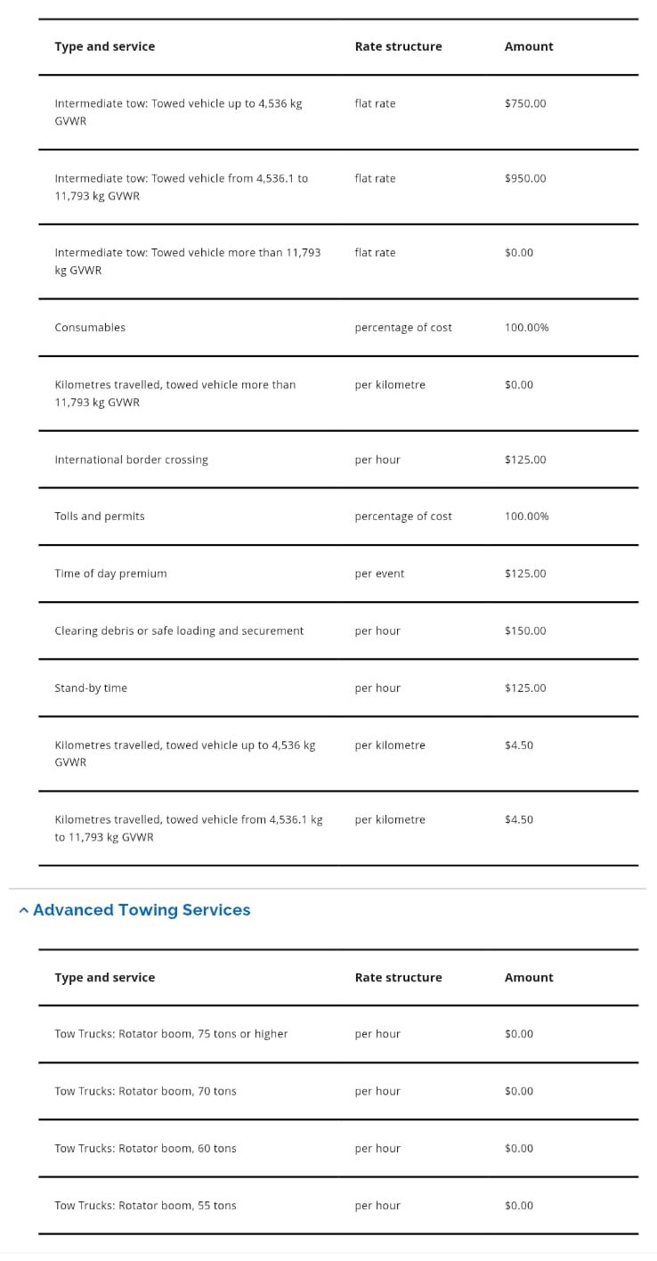 · Regular towing fee from the highway under jurisdiction of London, Ontario : $200