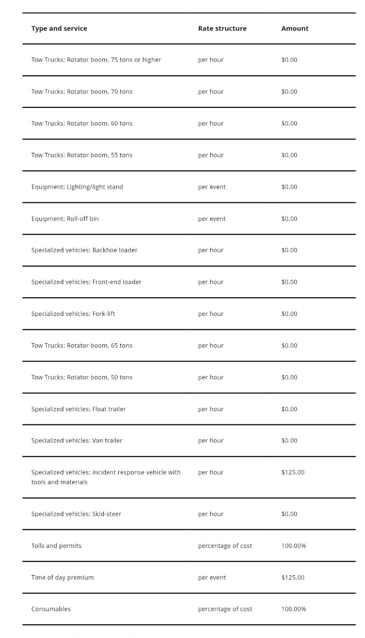 · Accident Towing Fee: $575 (That includes flatbed and Wrecker)